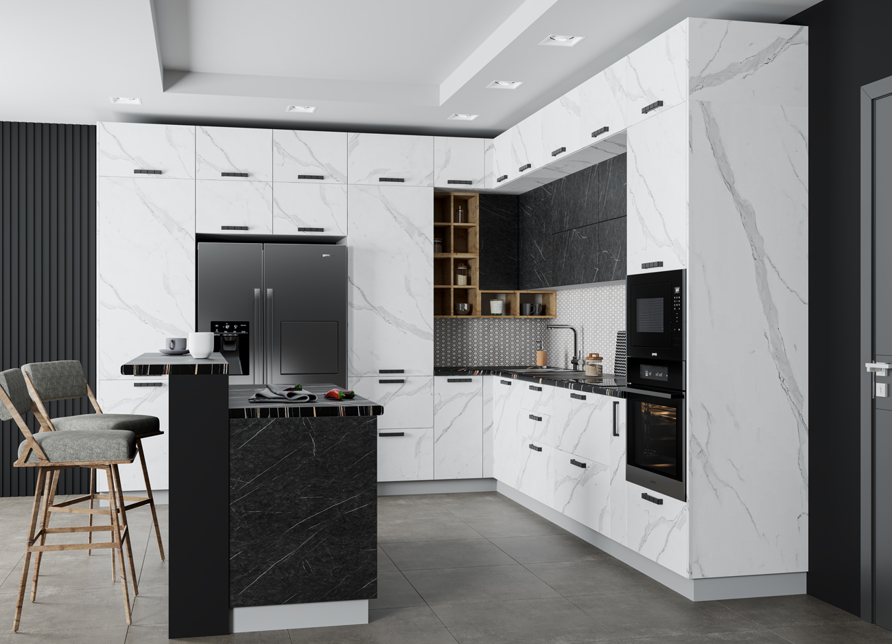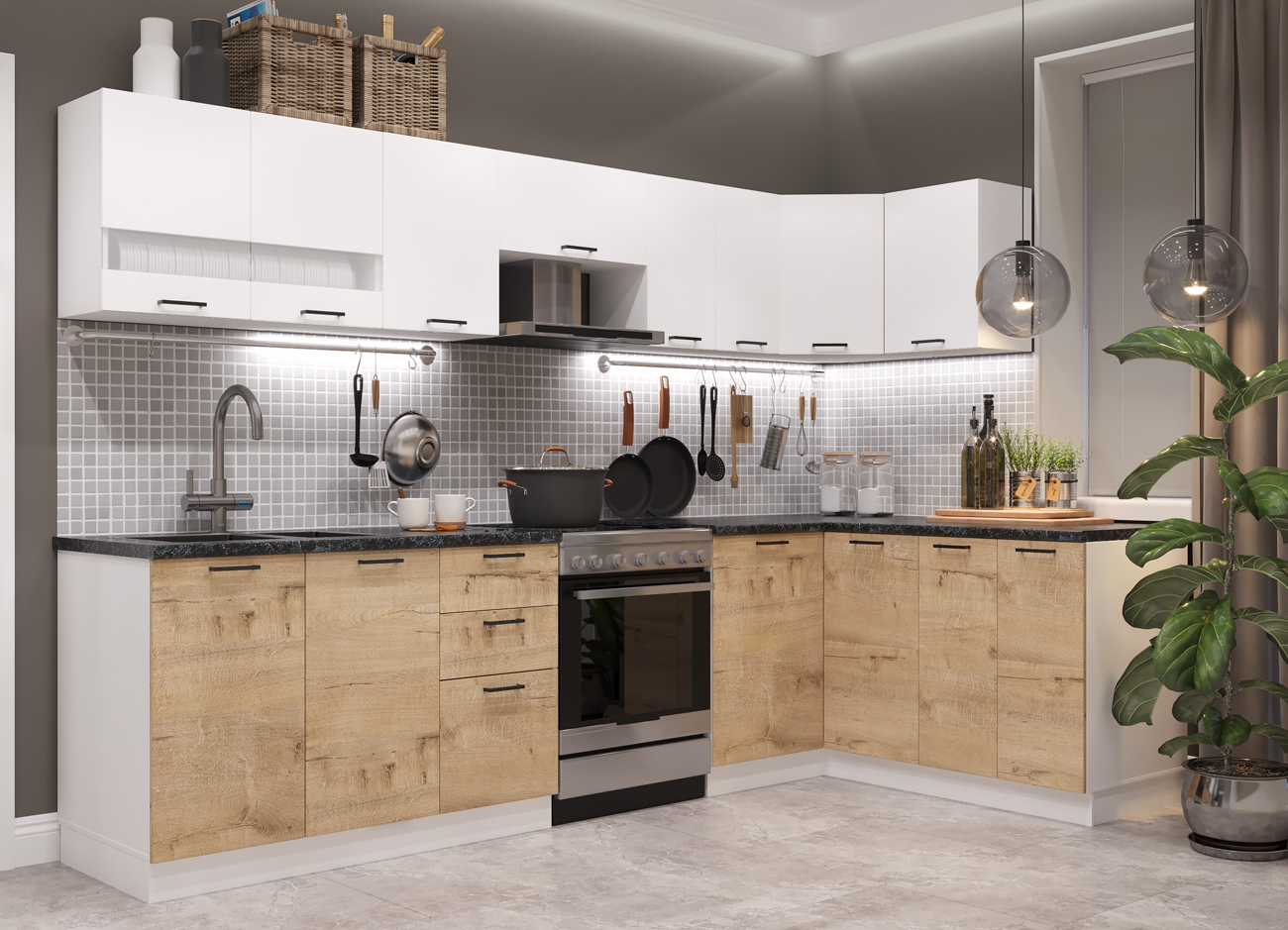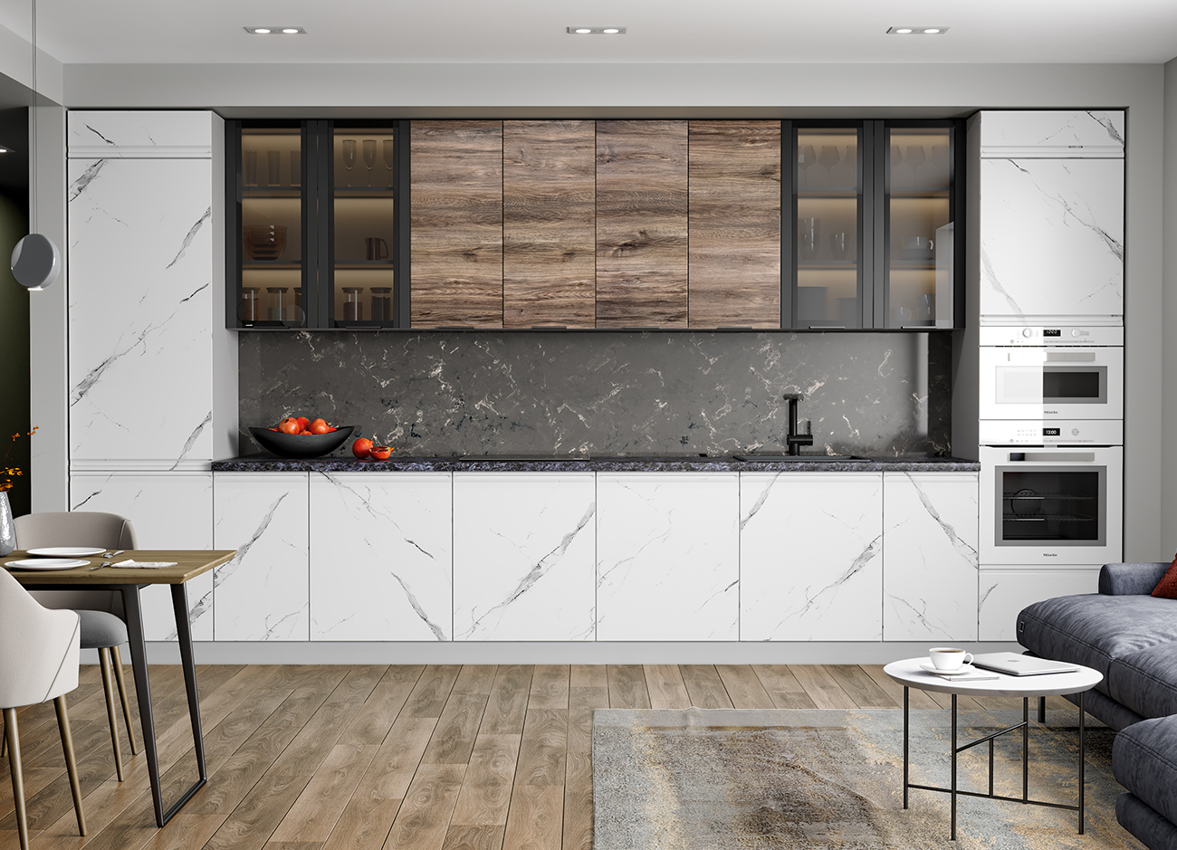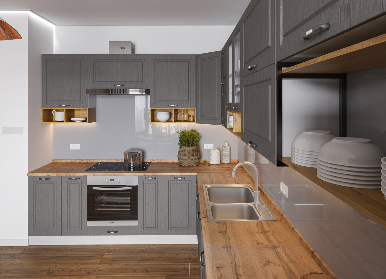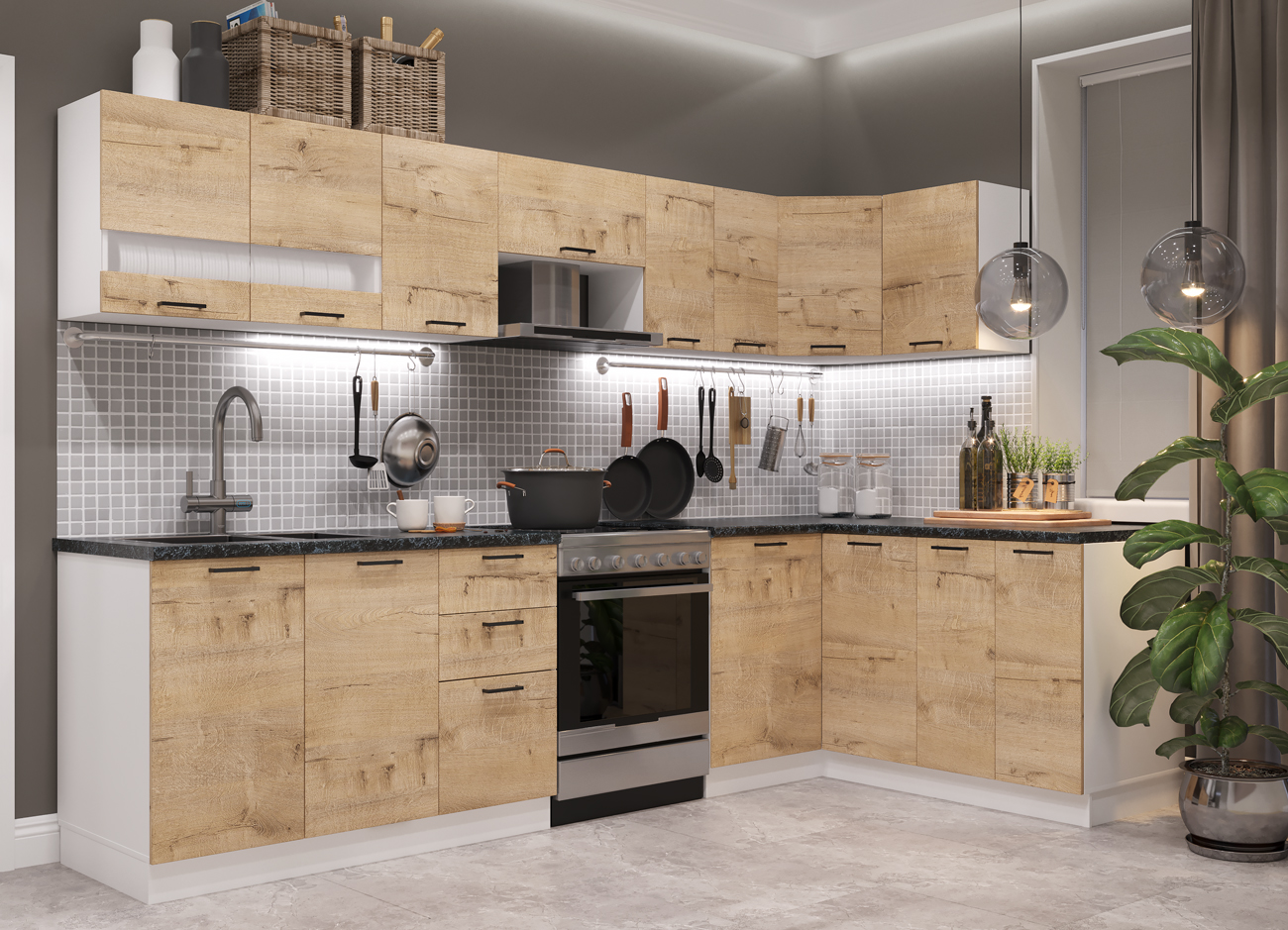 Кухонный гарнитур «Городской прованс», выполненный в стиле неоклассика, сочетает в себе симметричные и четкие геометрические формы, изящные элементы декора и отсутствие излишеств. Сдержанность и лаконичность – основные мотивы линейки «Гарда».